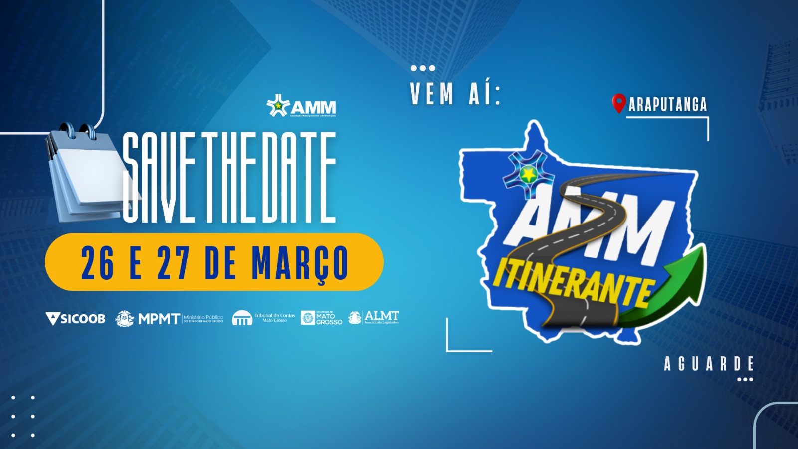 O Programa AMM Itinerante, promovido pela Associação Mato-grossense dos Municípios com o apoio do Tribunal de Contas do Estado (TCE), Governo do Estado e várias instituições parceiras, visa à integração e ao desenvolvimento de Mato Grosso através de encontros programados. Neste ano o programa será dividido em duas etapas: a primeira, no primeiro semestre, seguirá o conceito original do projeto; e a segunda, no formato de Encontros Técnicos, será realizada no segundo semestre. As atividades abrangerão sete macrorregiões: Oeste, Norte, Araguaia, Sul, Médio Norte, Noroeste e, por fim, o Vale do Rio Cuiabá.