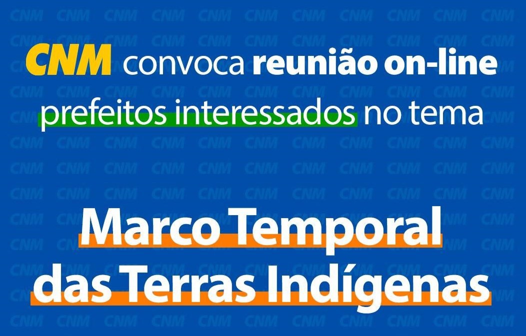 Na próxima quarta-feira, 24 de julho, às 9 horas, a Confederação Nacional de Municípios (CNM) fará uma reunião, em formato virtual, sobre o Marco Temporal das Terras Indígenas que está em discussão no Supremo Tribunal Federal (STF) por meio da Ação Declaratória de Constitucionalidade (ADC) 87. Os prefeitos e as prefeitas que tiverem interesse de participar do encontro on-line devem se inscrever aqui.